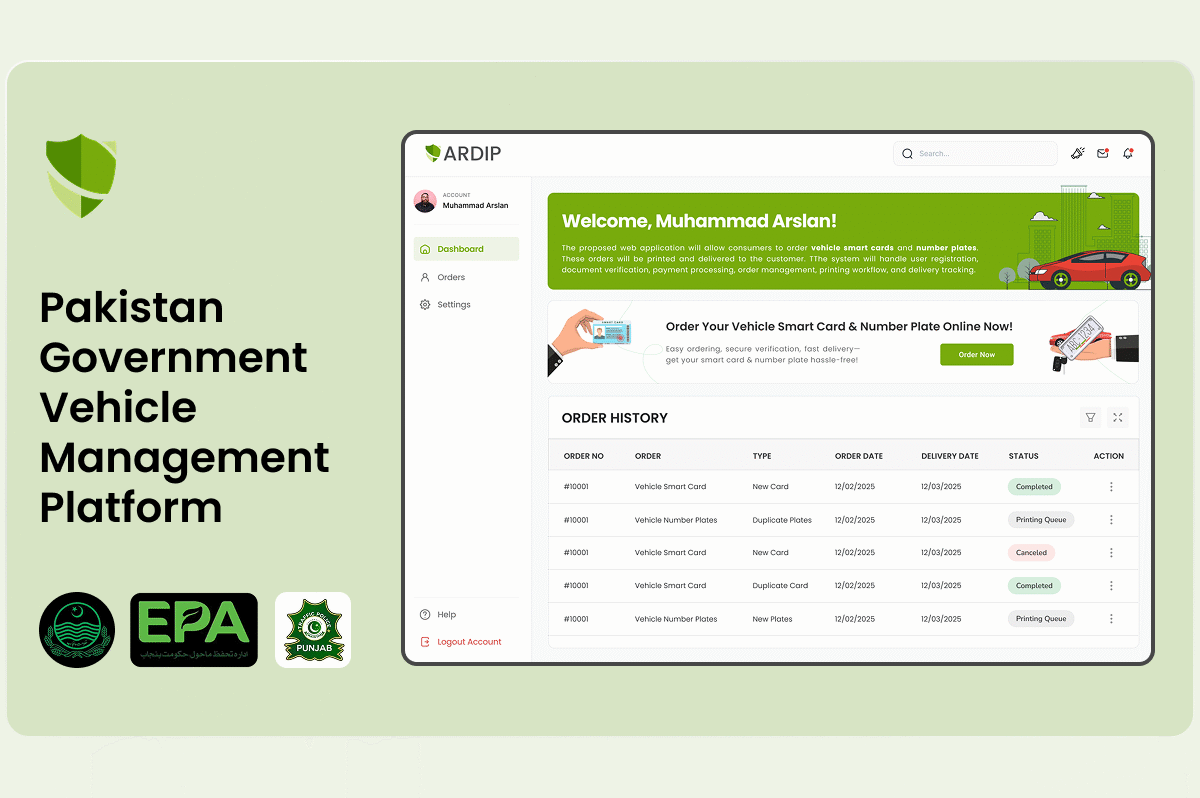 This project is a large-scale government web application designed for Pakistan’s vehicle management ecosystem, integrating key departments such as Excise, NADRA, Traffic Police, EPA, Law Enforcement, and Government Administration into a single, unified digital platform. The goal was to digitize, simplify, and secure critical vehicle-related services for citizens while enabling transparent, role-based workflows for multiple government authorities. This project is a major professional achievement for me, as it required designing a complex, multi-dashboard system used by both public users and multiple government departments.