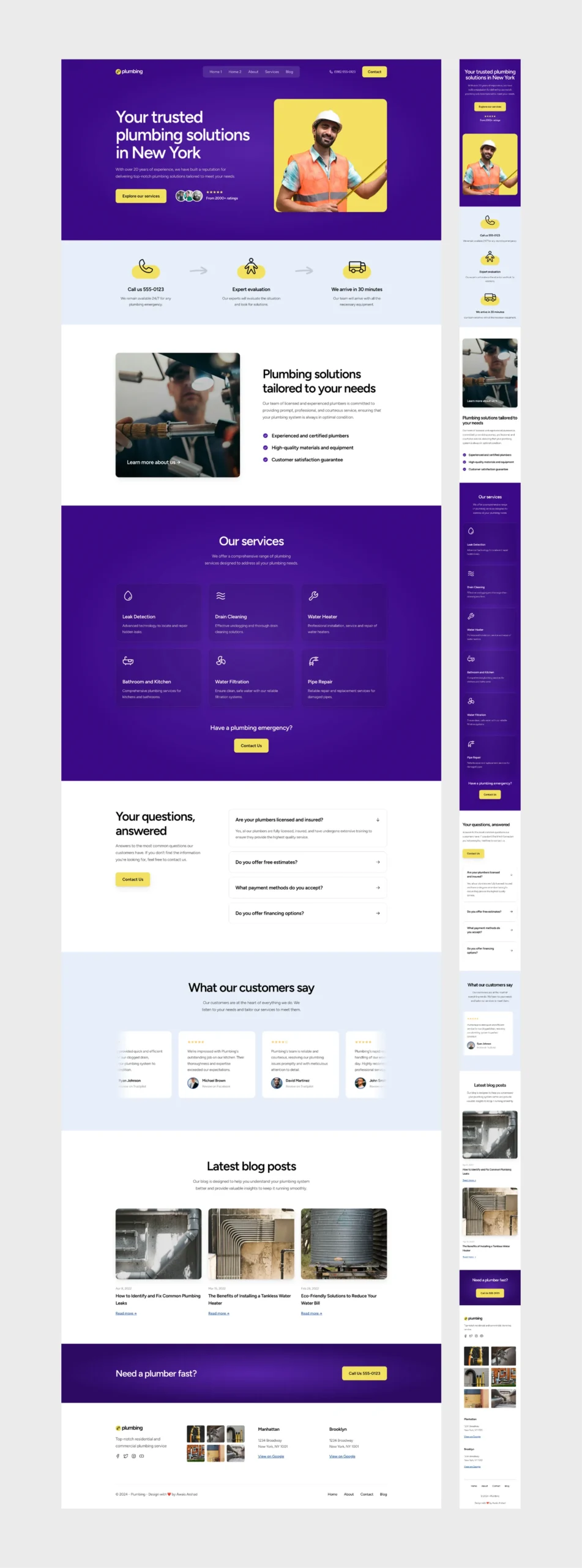This project focuses on designing a modern, trustworthy, and conversion-driven website for a local plumbing services company operating in New York. The goal was to create a professional digital presence that clearly communicates services, builds trust, and encourages users to take quick action during emergencies.