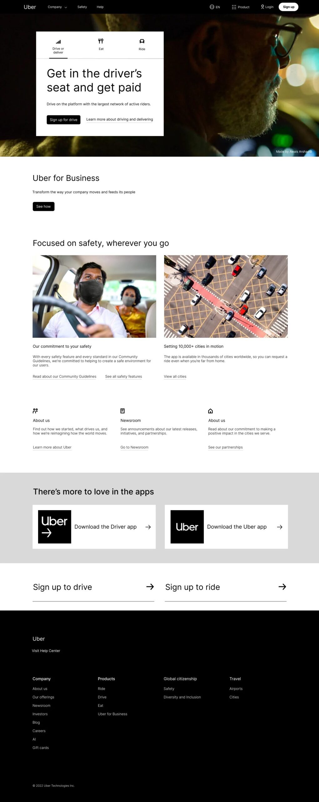 - User-Centered Design: Focused on providing relevant information and making the user journey intuitive, especially for those looking to sign up as a driver or business partner.